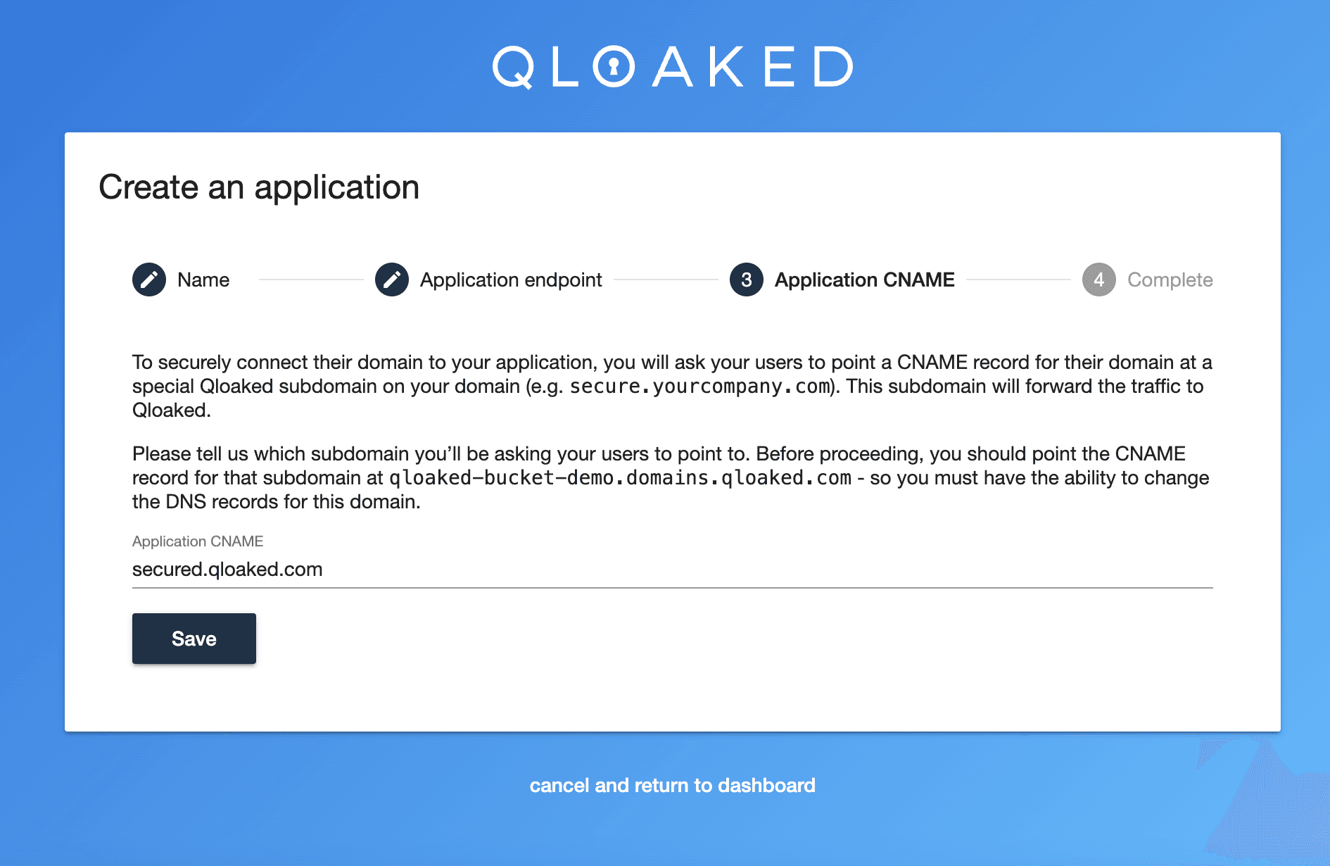 Set an optional application CNAME - This is what you'll provide to your customers to point to this application.